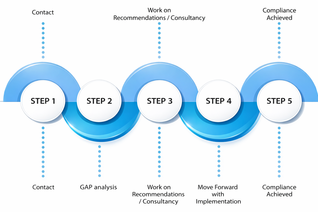 To begin with, our consultant will visit you to conduct a non-committal GAP analysis. This helps us to identify where your business is now, what needs to be completed to reach your intended goal and how many days consultancy would be required.